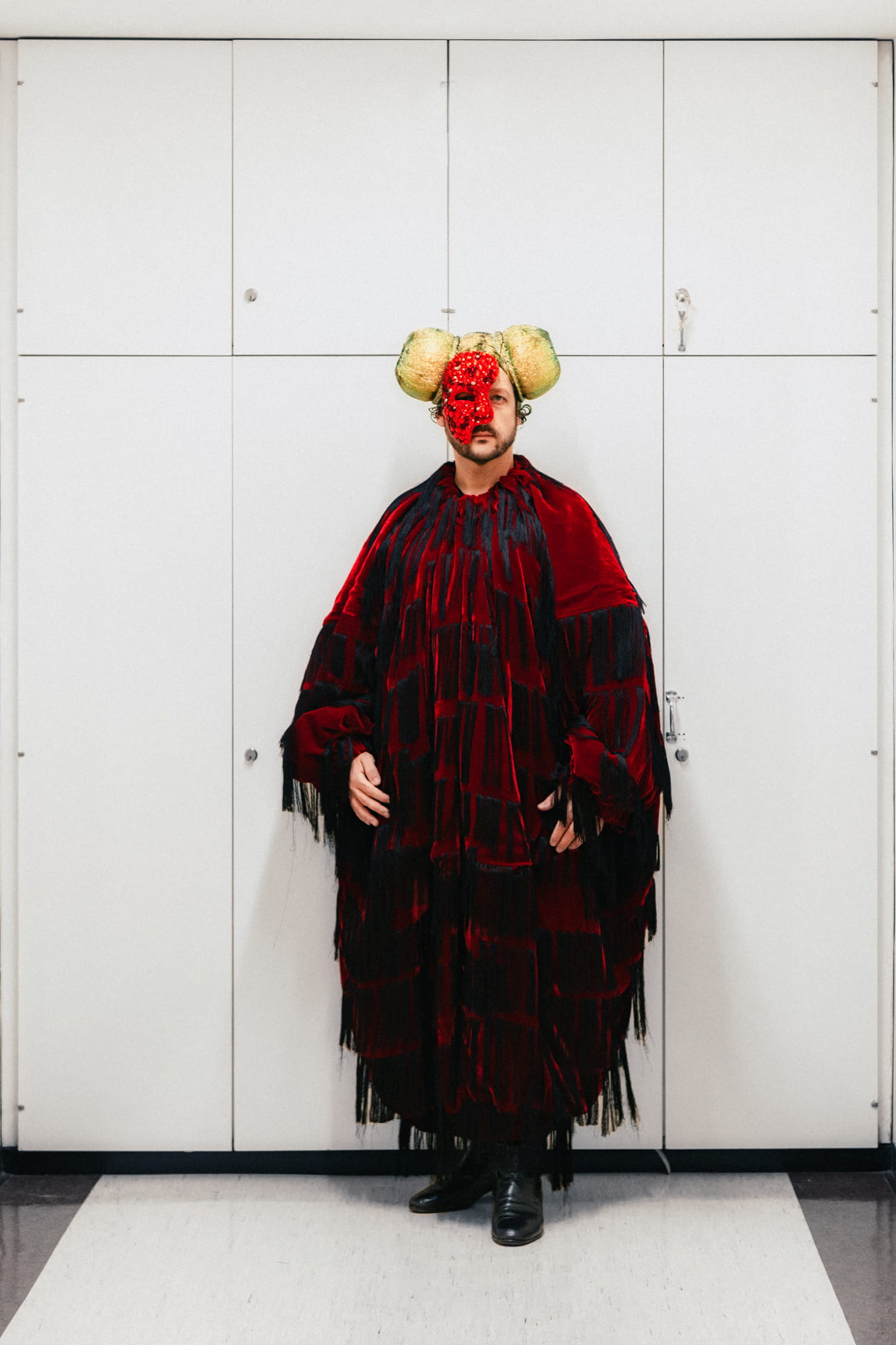 Christian Meidl as the Pope resembles a crimson plush velvet orb, dripping in fringe.